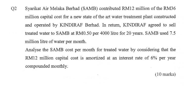 Solved Q2 Syarikat Air Melaka Berhad Samb Contributed Rm12 Chegg Com